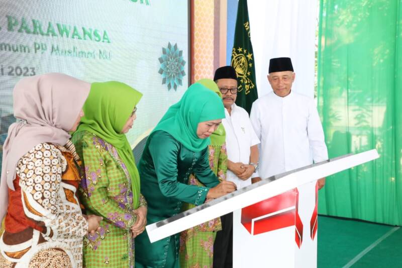Peresmian gedung dua lantai tersebut ditandai dengan penandatanganan prasasti oleh Gubernur Khofifah didampingi Wakil Ketua DPRD Jatim Anik Maslahah, Sekretaris Umum PP Muslimat NU Ulfa Masfufah, Ketua Tim Ta’awun Kantor PW Muslimat NU Jatim Prof. Mas’ud Said, Ka. Kwarda Pramuka Jatim H. Arum Sabil beserta Ketua PW Muslimat Jatim Hj. Masruroh Wahid.