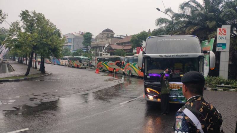 Sebanyak 15 bus siap memulai perjalanan ke 7 penjuru tujuan seantero Jawa Timur.