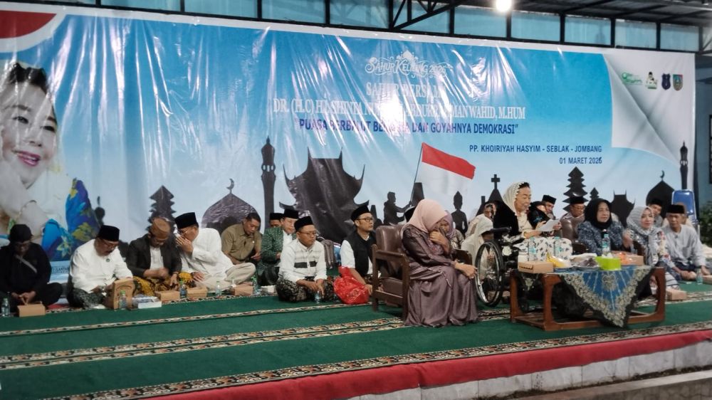 Jombang, radar96.com – Istri Presiden keempat Rl Gus Dur, Nyai Sinta Nuriyah, menggelar Sahur Keliling di Pondok Al-Khoiriyah Seblak Diwek, Minggu (1/3) dini hari. Sedikitnya, 300 undangan menghadiri acara bertema “Puasa Berbalut Bencana dan Goyahnya Demokrasi” itu.