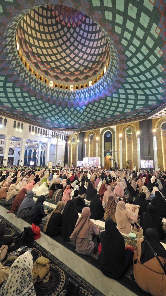 Suasana menjadi cair saat Ustadz Luqmanul Hakim memberi tausiyah dengan gaya khas. Ia memperkenalkan istilah “ATM” atau Allah Tempat Meminta dan TMBA alias “Terlalu Mudah Bagi Allah” untuk menguatkan tauhid jamaah. Ia juga menyentil soal urusan jodoh bagi anak muda dengan kriteria CSM (Cantik, Sholehah, Mau) dan GSM (Ganteng, Sholeh, Mau).