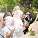 “Mugi-mugi sedoyo (semoga semuanya) yang membaca sholawat dan tahlil, akan mengantarkan kita menuju syafaat Rosulullah SAW serta mengantarkan kita semua menuju surga Allah SWT. Aamiin Ya Robbal Alamin,” katanya.