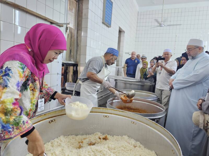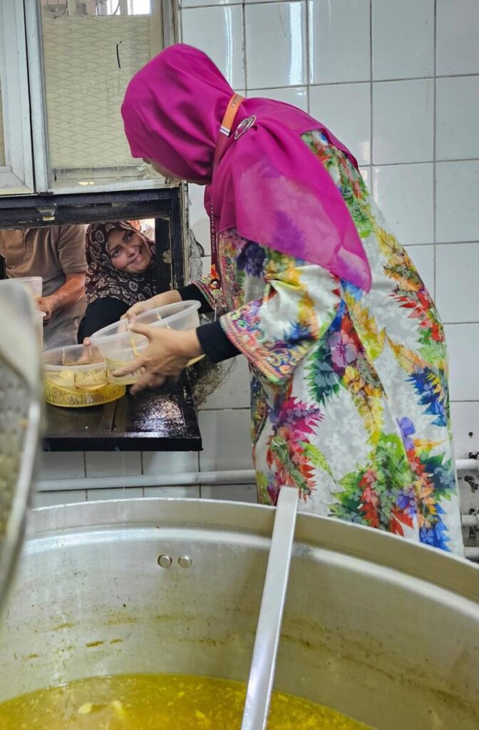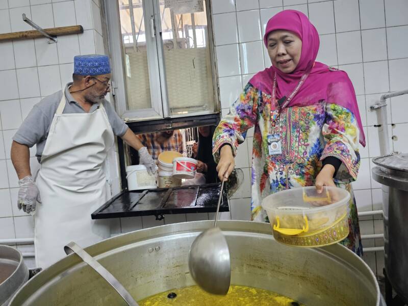 Saat mengisi panci, Khofifah secara langsung dipantau oleh Syekh Afeefuddin. Khofifah dipandu langsung untuk menuangkan porsi makanan bergizi yang akan dibagikan pada dhuafa dan fuqoro yang telah panjang mengantre.